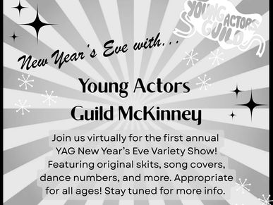 Join us for the first annual virtual Young Actors Guild New Year's Eve Variety Show. Featuring original skits, song covers, dance numbers, and more. Appropriate for all ages!